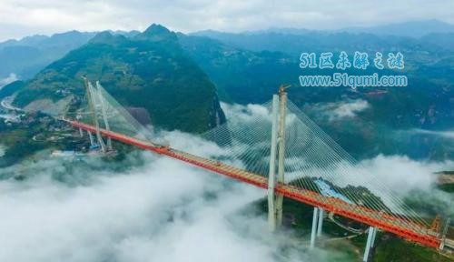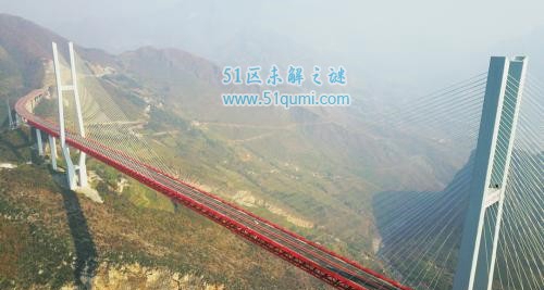 北盘江大桥是暂时世界上最高的桥梁,桥面到谷底笔直高度565米,相称于200层楼高,超过贵州省六盘水市水城县都格镇和云南宣威市普立乡,是杭瑞高速贵州省毕节至都格镇(黔滇界)马路的三座大桥之一。大桥超过云贵二省接壤的北盘江大峡谷,与云南省在修的杭瑞高速普立乡至宣威段贯串。