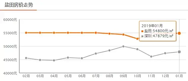 盐田12月新房均价 54800 元/m²