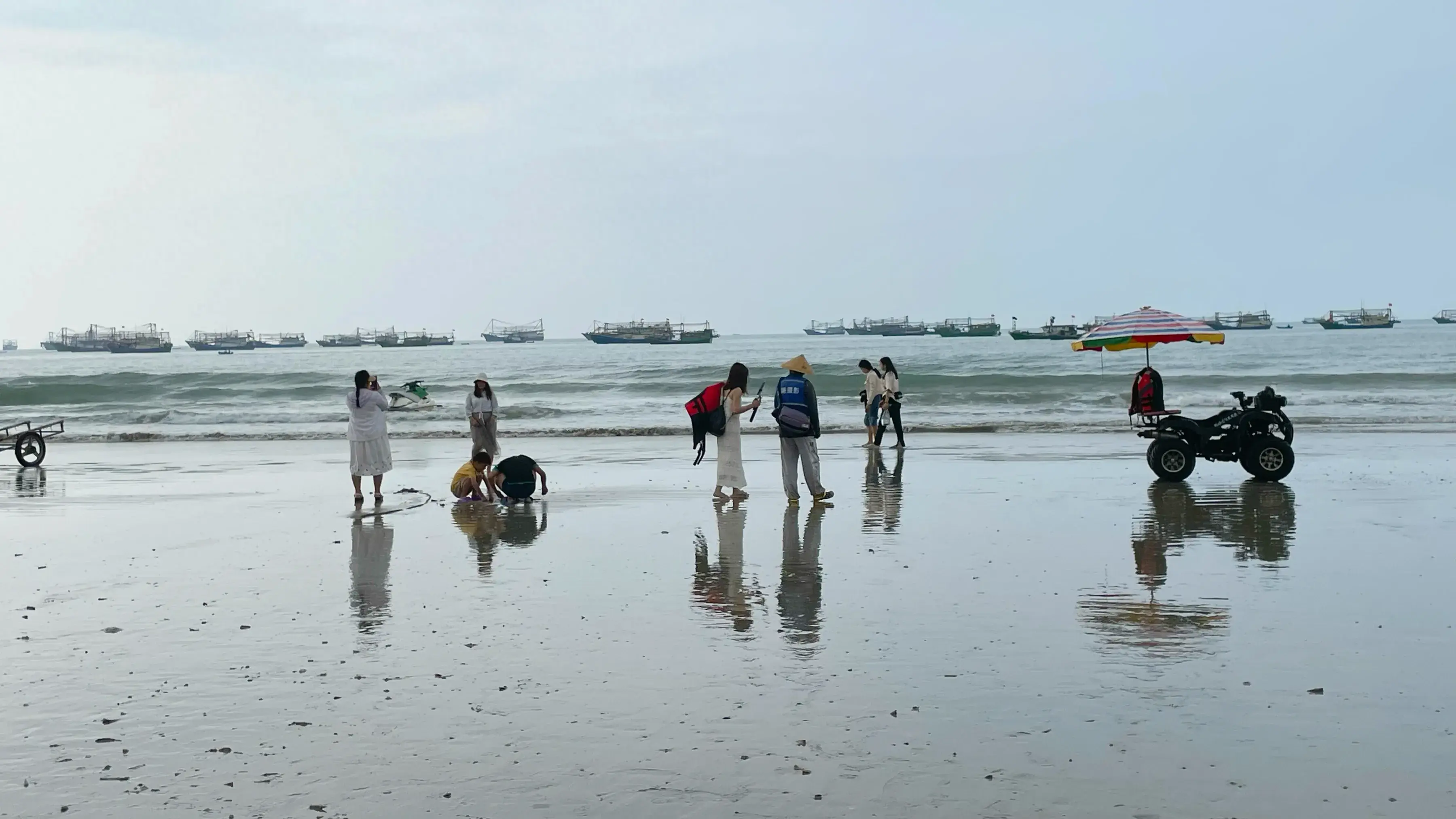 第四个人给我们建议,去桥港海滩吧,那里也是银滩。我是第一次骑电车,不敢提速,开了一个小时才到桥港,电车费支付了8元。但是这里虽然是个不错的海滩,却并不是银滩,游客也不多。