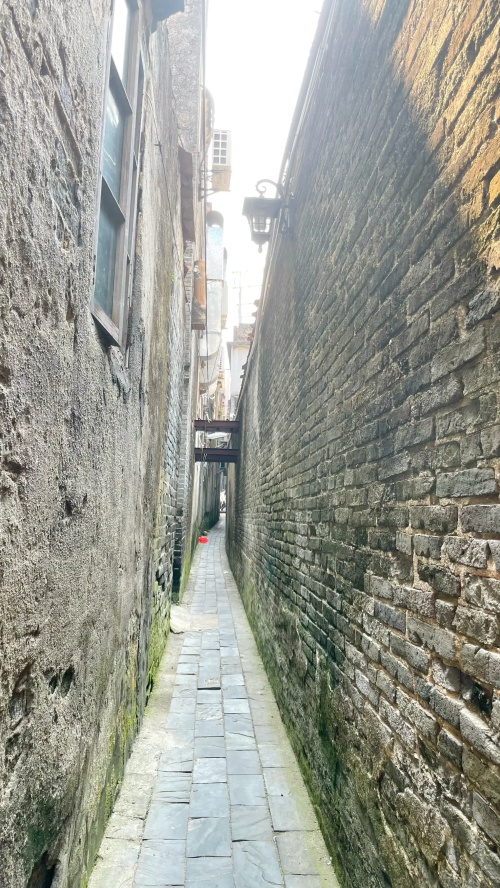 穿过一条狭窄的胡同,老街让我眼前一亮,房子墙面好像发霉了,卷拱外沿及窗柱顶端却线条流畅、工艺精美,中西合璧的建筑风格,像欧洲又不完全欧洲。有一种沧桑之美,让我一下子就喜欢上了。