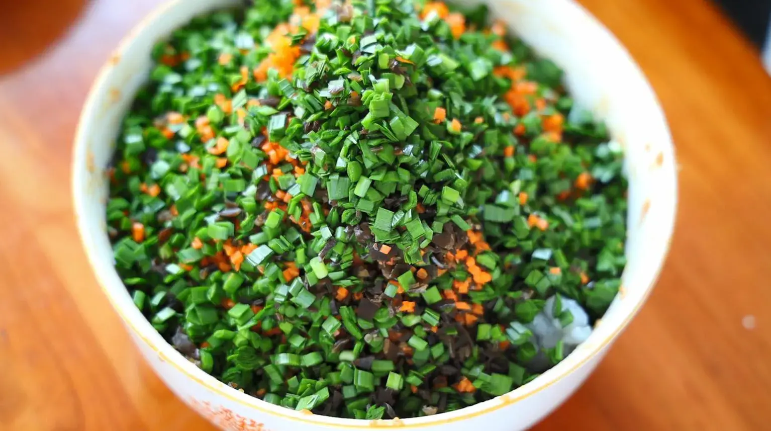 制作配料:肉馅儿1200克 虾仁200克 韭菜1把 胡萝卜半根 木耳1小把 生抽2勺 老抽2勺 蚝油 1勺 胡椒粉3克 盐2勺 鸡蛋1个 葱姜水8-9勺