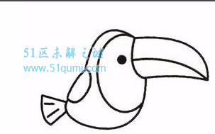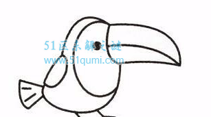 2、在嘴巴右下方绘一个肥肥的身材,在身材内里绘个小曲线动作巨嘴鸟的党羽。