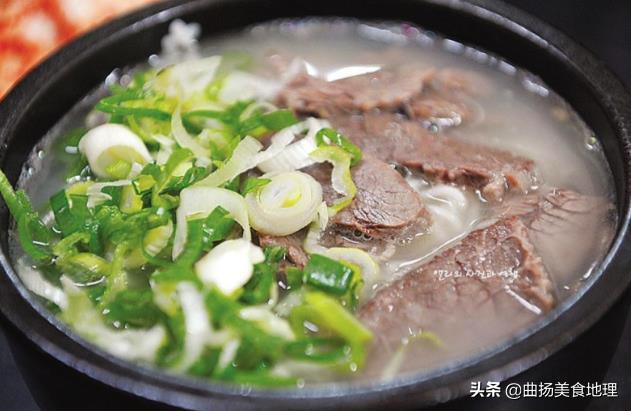 这种牛骨汤很容易辨认,熬制骨头并形成其乳白汤色,一般只用葱和盐调味。