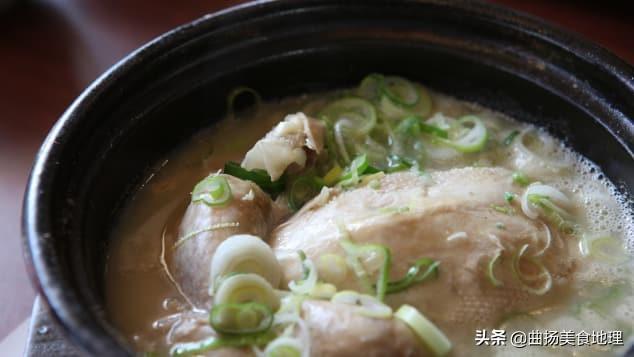 其中最具代表性的是参鸡汤,这是一种粘稠的汤,里面有一整只填满馅料的鸡肉漂浮在沸腾的锅里。