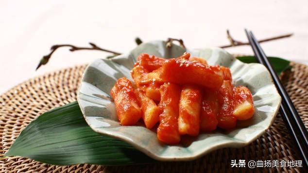 辣炒年糕是一种简单的韩国街头小吃,由米糕和鱼糕做成。