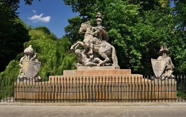 华沙城中索别斯基的雕像,他的马下是将死的奥斯曼士兵