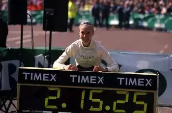值得一提的是,女子全马的成绩记录也是她所保持的,在2003年4月13日的伦敦马拉松赛上面,她创造了2:15:25的世界纪录 ,至今无人能破。