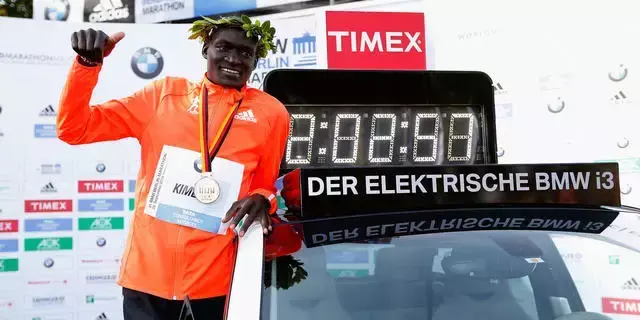 2014年09月28日的柏林马拉松,见证了全马世界纪录的诞生,丹尼斯·金梅托跑完全程仅用了2小时2分57秒,人类首次将马拉松跑进2小时3分。在此之后,也引发了“人类全马能否跑进2小时”的争论。