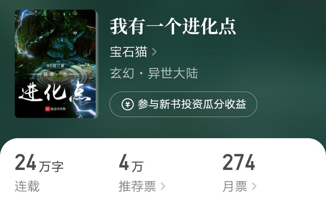 10、我有一个进化点,作者:宝石猫 ( 大神 ),起点首订:约770