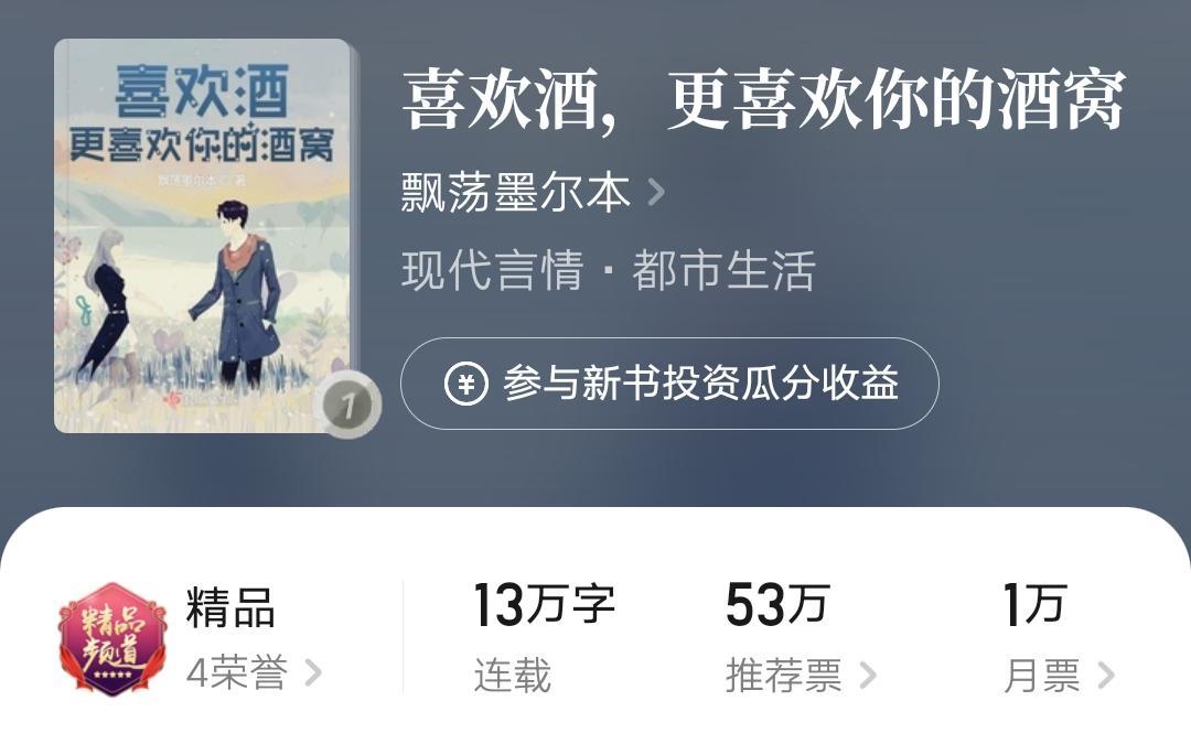 07、喜欢酒,更喜欢你的酒窝,作者:飘荡墨尔本 ( 大神 ),起点首订:约3100