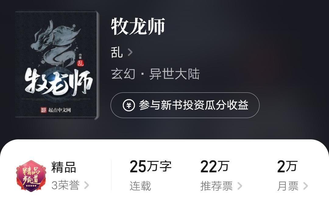 03、牧龙师,作者:乱 ( 白金 ),起点首订:约9000