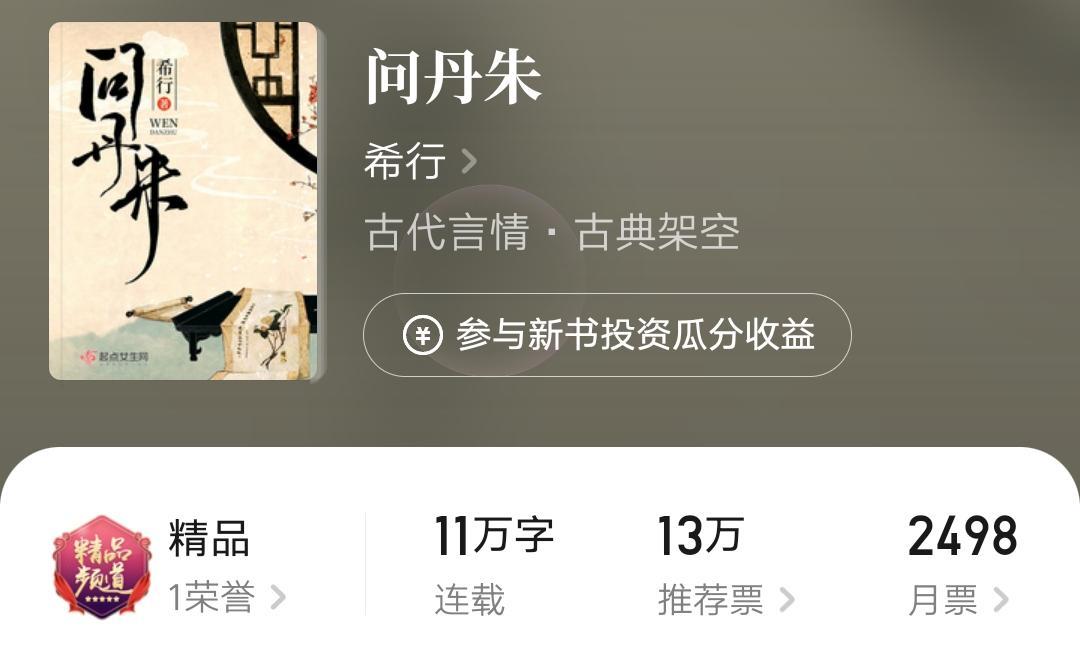 08、问丹朱,作者:希行 ( 白金 ),起点首订:约3100
