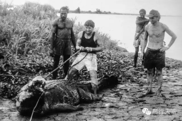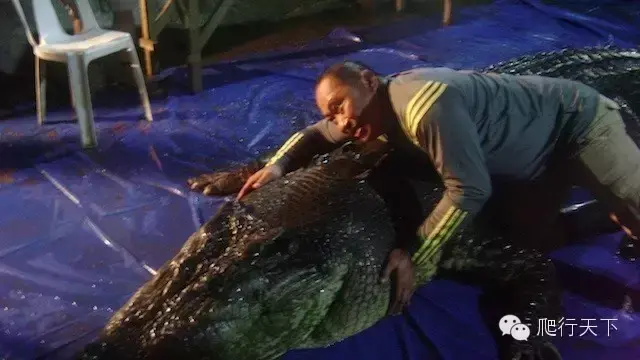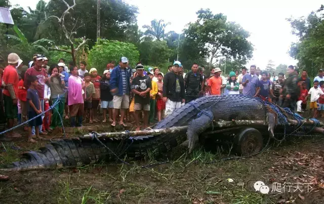 这是一只体型异常巨大的湾鳄,1958年Krys在昆士兰被射杀,死后拍下了这张照片,传闻有8.64米。但这却是十分可疑的,没有十分确凿的证据证明这个记录。