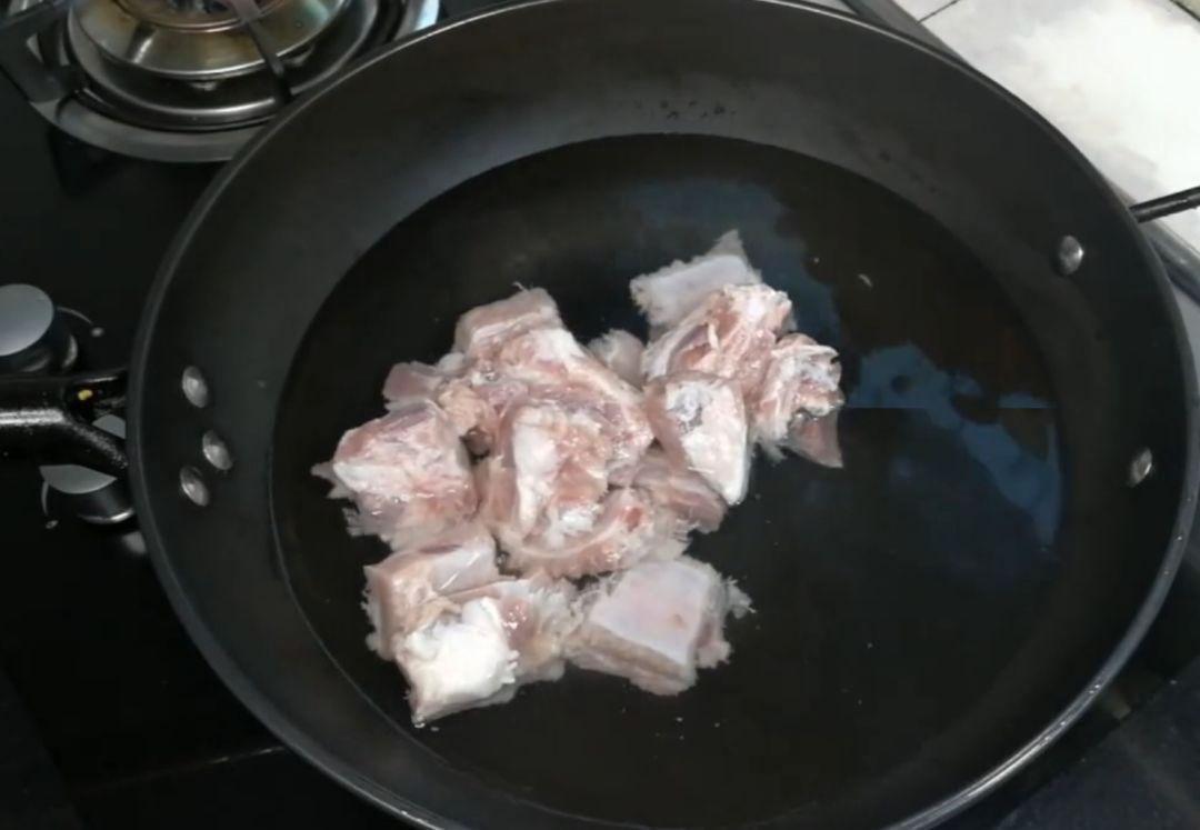 2.锅中倒入适量清水,下入排骨,大火煮开,煮出浮末后捞出,清洗干净沥干备用。