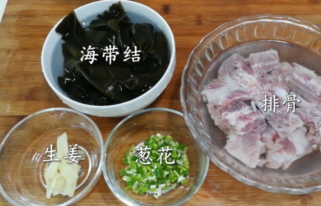 首先我们需要准备的食材有:排骨、海带、生姜、香葱(适量即可,根据自己的食量和人数来确定食材)