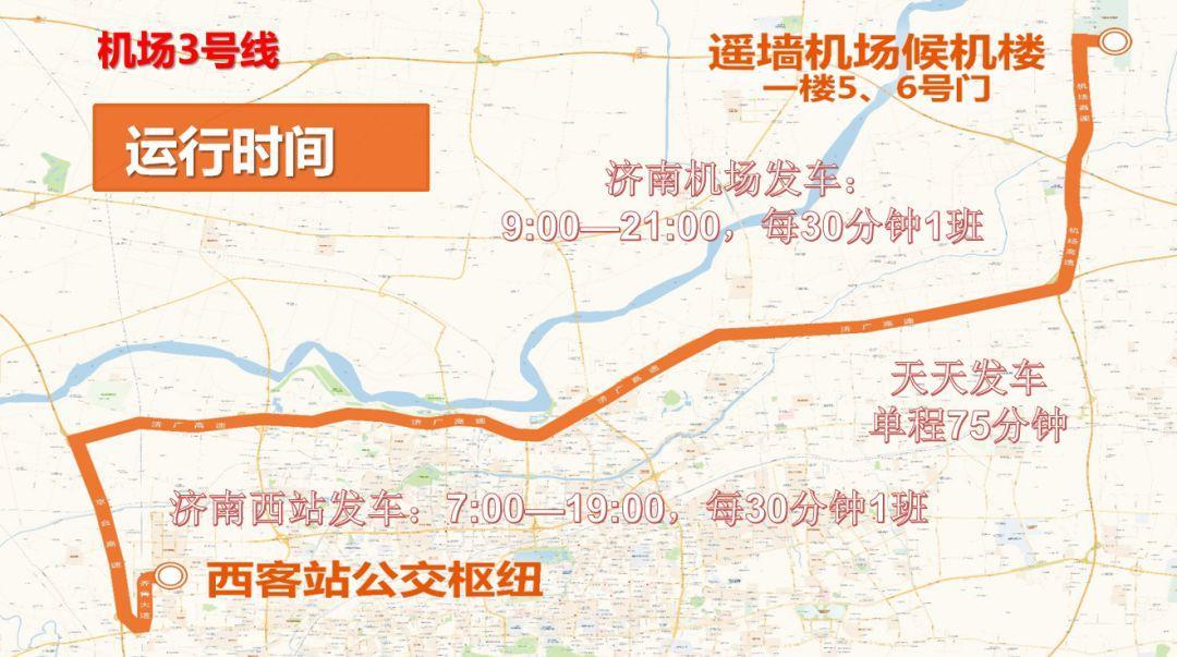 济南西站至遥墙机场方向:7:00—19:00发车,每30分钟一班;西客站公交枢纽3号站台发车,票价20元,1.2米以下儿童免费,残疾军人半价。