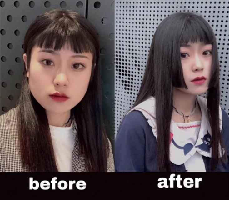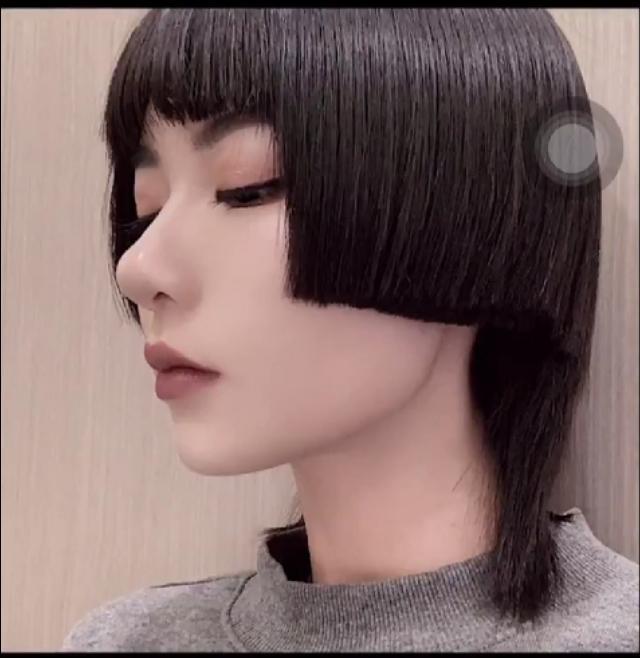 公主切原本带有二次元的可爱气息,妹子搭配二次元刘海简直是太可爱了,黑色的发色也非常先肤色白皙看着妹子精致的五官简直有没有马上想剪一个呢。