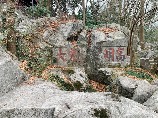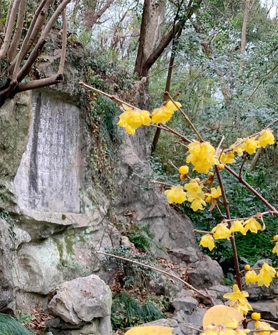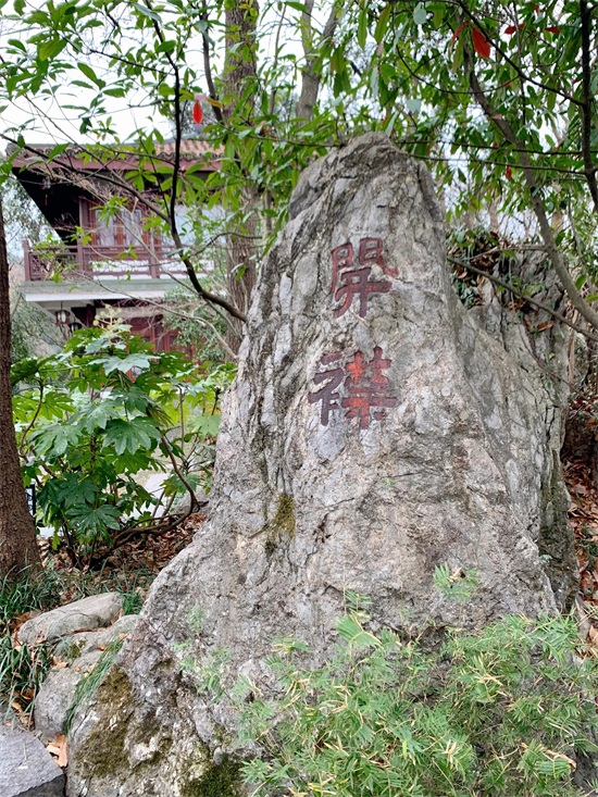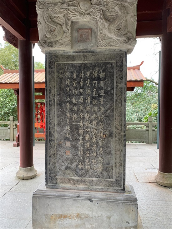 石林,嶙峋剔透、青苍玉削、姿态各异,且有奇花古藤相映衬,清丽静穆,为书院一绝。石林为历代文人所钟爱,有摩崖题刻二十多处,名人赋诗百余篇。亭台楼阁点缀其中,远往可看西湖美景。