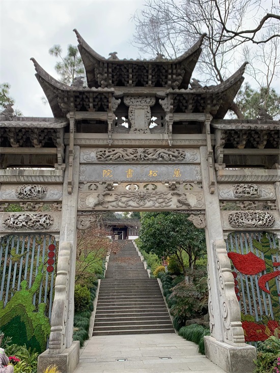 从大门进去,远远可见万松书院牌坊,拾级而上依次过仰圣门、毓粹门、明道堂、大成殿、最后到“万世师表”平台。二侧亭台楼阁依据山势而建,."梁祝"十八相送故事场景点缀其中,更有书院一绝“石林”。