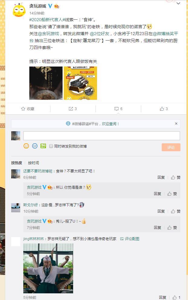犹如贪玩游戏中的那些明星大腕,贪玩游戏有了他们的代言才会被更多玩家熟知,这款游戏才能被玩家了解。继古天乐、郭富城、欧文这些巨星之后,贪玩游戏最近又爆出了下一个8090后熟知的代言人,听说还是与"食神"有关,大家能猜出是谁吗?
