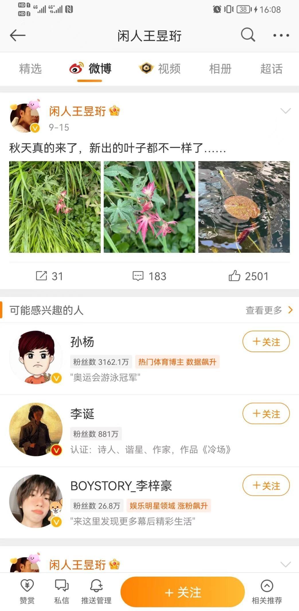 从王昱珩的微博中可以看到,他的生活很多闲趣,种花、做手工、公益等等,比大多数人想得要丰富,充满生机,也要更加轻松自在。
