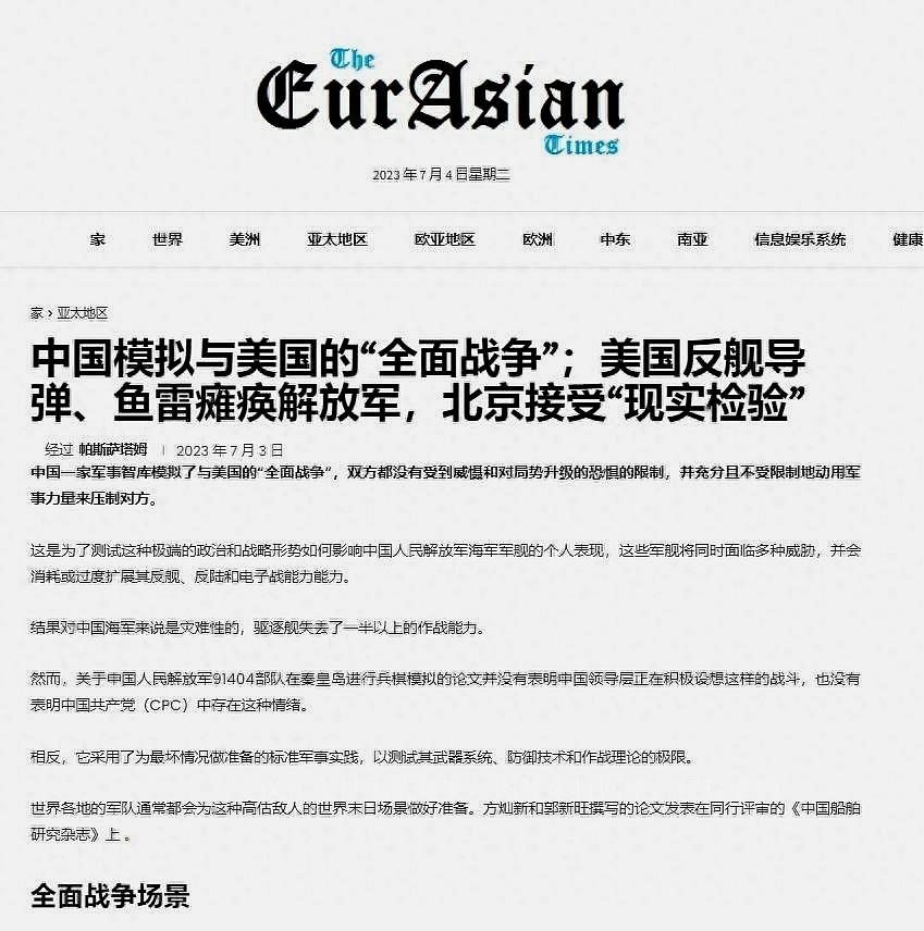 中国推演的全面战争,令西方不安,解放军对美国做最坏的打算