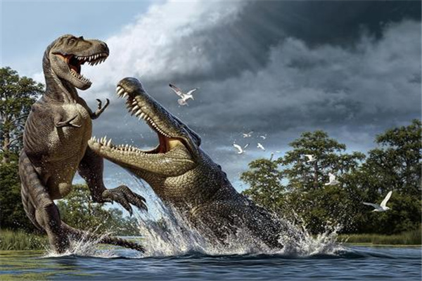 当巨齿鲨鱼与恐鳄之间发生矛盾和斗争时,占上风的一定是巨齿鲨。巨齿鲨的体型巨大,据统计,体形最大的巨齿鲨的身体长度一度超过了20m,并且由于其牙齿极为尖锐,嘴部的结构特殊,其在咬合力上也是所有生物当中的最强代表,其一次的咬合力是邓氏鱼的30倍不止。巨齿鲨的杀伤力是所有古往今来的生物当中的极高水平,恐鳄自然是不敌巨齿鲨的。