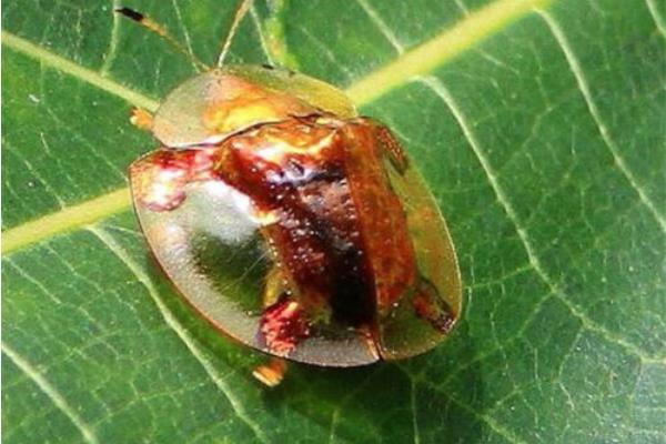 黄金龟甲虫的体型十分小,体长还不及1厘米,然而是它涓滴不怕鸟类的威逼,由于它的外壳固然很引人醒目,然而是本质上它能渗透一种酸性液体,鸟类是十分腻烦这种气息的,所以它常常都能遁过一劫,而最为特殊的是,这种液体也是黄金色的,瞅起来便像是金水一般。