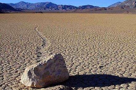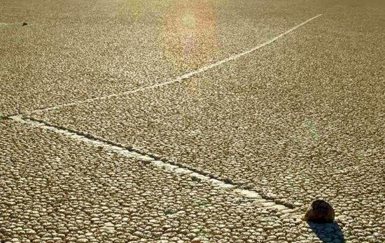 牺牲谷荒凉平本上散降的石头都是从四周的山上滑降下了的,这都是些十分一般的石头,并且这些石头挪动的目标各不相通。这片戈壁是一派搞涸的湖床,湖床上的粘土已龟裂成多数的小裂块,这片湖床长约4.5公里,宽约2公里,大地特殊的平展,清楚看来石头漂移事后留住的一条条轨迹。