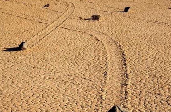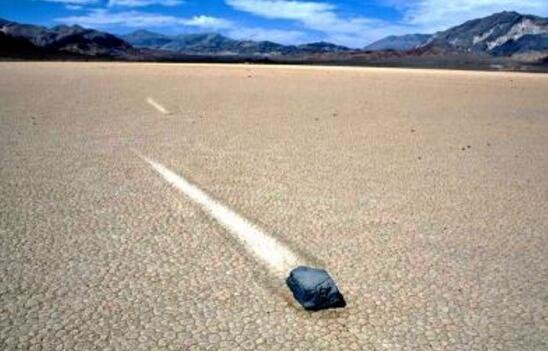 闭于于牺牲谷石头漂移之谜的摸索,美国以为本地存在的一种奇异局面,在本地沉达25公斤的伟大石块会自动漂移。科学家瞅测创造,在7年时间内瞅测的30块石头中,个中有28块漂移可了200多米。许多科学家推测,这种局面大概与地下水位有闭。