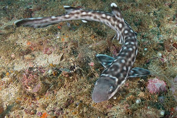 小斑猫鲨是暂时在北大欧美海疆中创造的体型最小的鲨鱼种类之一,身材全长没有会胜过1米,尾巴便占到了所有身材的三分之二,头颅极为宛转,长罕见十个鱼鳍,浑身遍及褐色雀斑,也是北大欧美水域中数目最多的鲨鱼之一。