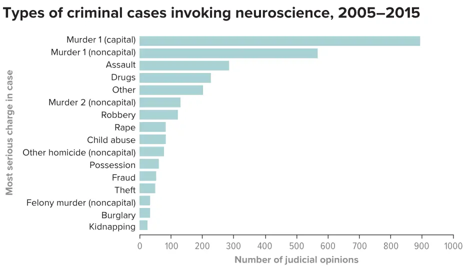 根据杜克大学法学院教授兼法律系主任尼塔·法拉哈尼(Nita Farahany)的研究,从2005年到2015年,有超过2,800份司法案例需要对犯罪嫌疑人进行神经科学鉴定。