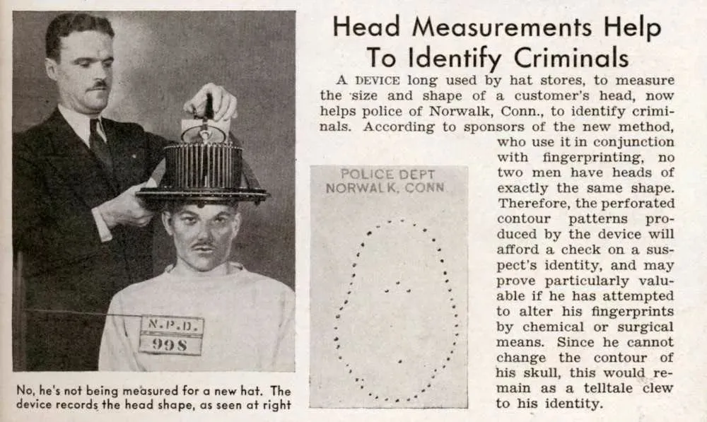 1939年一份美国康涅狄格州纽瓦克当地报纸的报道,颅相学帮助司法机关甄别罪犯 | http://blog.modernmechanix.com