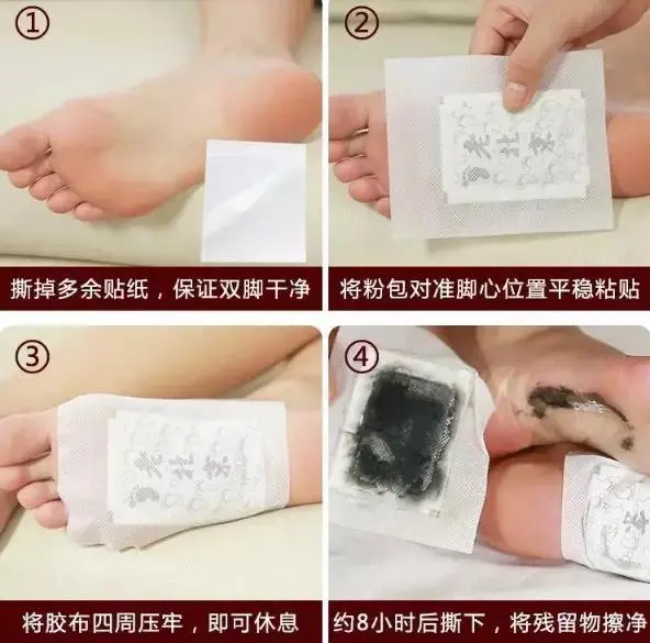 足贴只要遇水就会变黑,不信的朋友可以试着把足贴盖在开水杯口上,药粉被蒸汽熏久了也会变黑,在脚上贴一晚上,吸收皮肤汗液,自然也就变黑了。