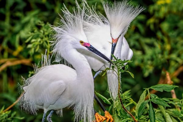 雪鹭完全瞅起来和表露鹭的格式相像,然而是它的脑后、背部和脖子上都长有更为建长的饰毛,通常都是折叠紧贴着皮肤的,而惟有在成长期的时间才会启展,这时瞅起来便像是仙气飘飘的美夫君,不妨说是世界上最伟人的鸟类了,和新几内亚极乐鸟有得一拼,而且它们相较白鹭来说,并不是浑身都是皎洁的,雪鹭的眼睛和鼻孔、足爪等处都浮现橙赤色,这也是它身上独一鲜明的局部。