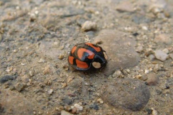 六斑异瓢虫相比我们常见的瓢虫,身上的颜色和斑纹都有着很大的不同,普通的瓢虫基本上都是背部翅膀呈现大红色,带有黑色的原型斑点,而异色瓢虫则是漆黑的底色,翅膀上布满了各种橙色的不规则斑纹,并且在脑袋两侧还长有两个半圆形白斑,看起来有着怪异。