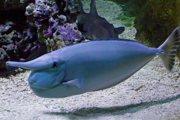 突角鼻鱼又被称为环纹鼻鱼,它最大的特性便是额头上长有一个棒状突起物,让人一眼便能料到匹诺曹的长鼻子,所以才因此得名。突角鼻鱼长年休憩在珊瑚礁、泻湖等浅海海疆,它碰到伤害便会甩动尾巴打挨对于方,由于上头长有二根长刺。