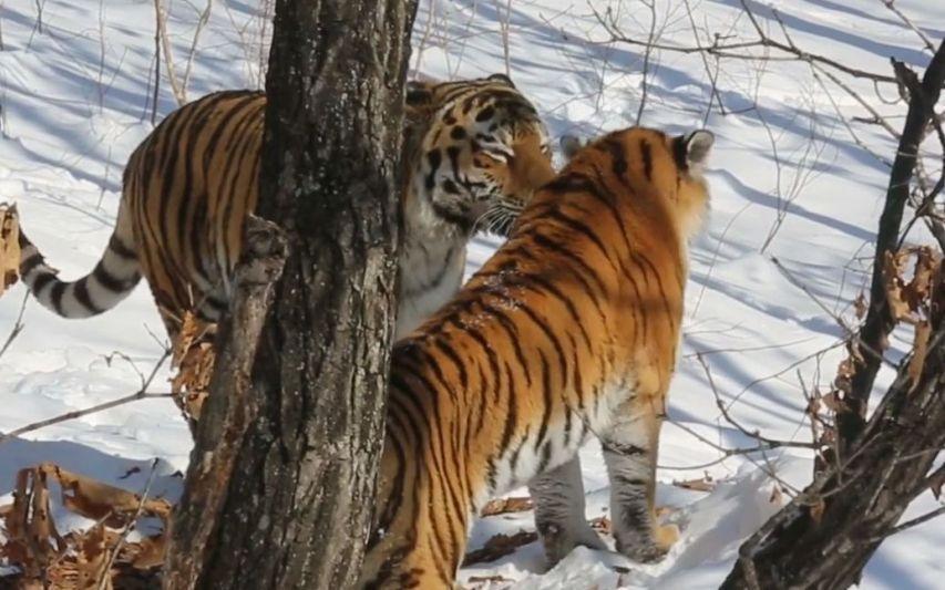 老虎们选在亚洲的冬季进行交配繁殖,也是为了让幼崽能够在天气回暖的春季出生,提高小老虎的存活率。