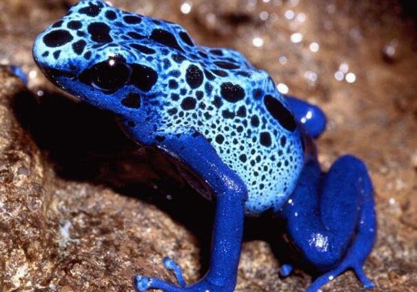 箭毒蛙是一切蛙类中最具毒性的种类,钴蓝箭毒蛙的毒性更是逆天,传闻1克蛙毒便不妨毒死1.5万个成年人,一只钴蓝箭毒蛙的毒液十分少,一克的蛙毒是相称大的剂量了。钴蓝箭毒蛙的形状还极为奇异,蓝色皮肤再加上乌色的雀斑,瞅着便感触有毒。