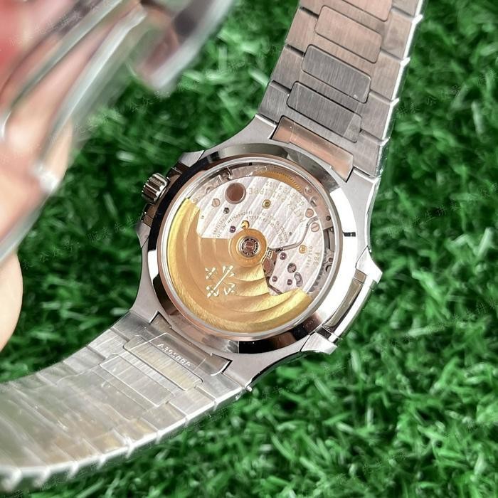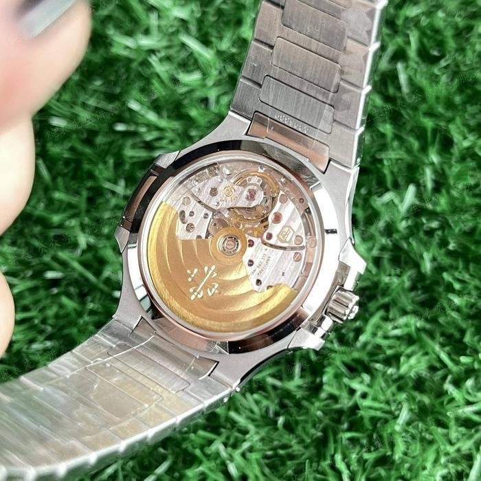 底盖是背透设计,通过蓝宝石玻璃镜面可以一览无余的看到机芯运转的过程,精妙绝伦的摆陀和日内瓦纹打磨,3k鹦鹉螺搭载全新一体式Cal.324机芯,走时精准并且保证了功能的一致性,机芯上的钢印清晰有力,宝石颜色也十分靓丽。