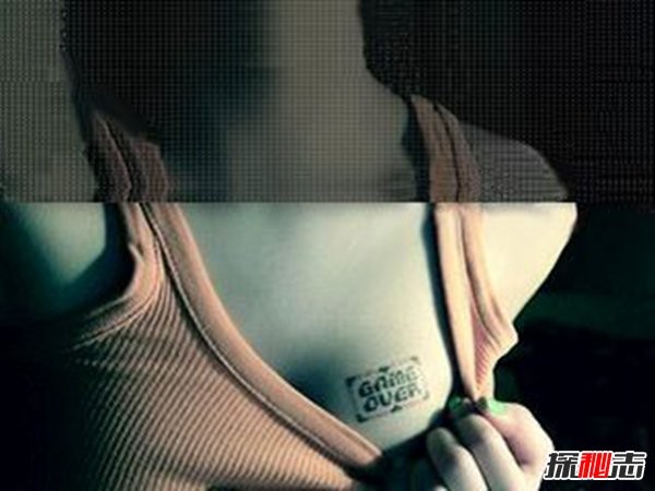 2、在自己的乳房和下体上纹