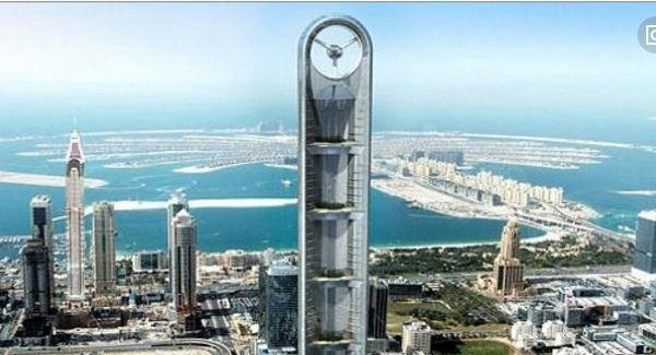 一同具有125层,总高度到达了700米。每隔27层便有一个供栖息参瞅的露台。大楼外形像超大范围的风力涡轮(此地实则是一间餐厅),商住二用,将住房,办公室,零卖场所,栈房,以及世界一流的艺术绘廊全体集结在所有。