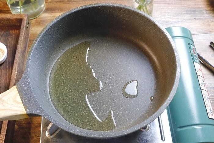 步骤4、准备一个不粘锅,倒入适量的食用油。