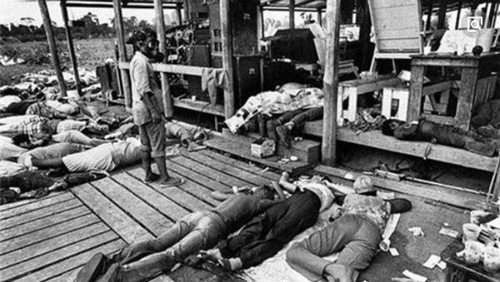 教士吉姆琼斯(Jim Jones)打着帮助流浪者、失业者和病人的旗号,1953年在在美国印第安纳州创建了人民圣殿教这个组织。但有前教徒称,组织内存在大规模虐待行为。为了躲避进一步的监管,琼斯在圭亚那(Guyana)的丛林中建造了一个聚居地,希望打造一个热带乌托邦。但是当一名议员和三名记者造访该聚居地,试图调查虐待事件时,这几人却被枪杀了。枪击事件发生后,该教的913名成员其中还包括数百名儿童都因喝了下毒的Flavor Aid饮料而死亡。