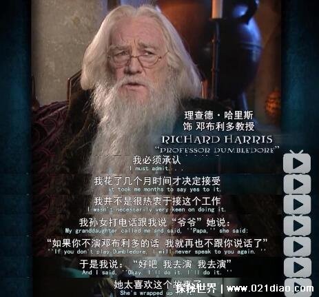 他在哈利波特第一、第二部里饰演邓布利多,理查德一开始是不愿意饰演邓布利多的,但是在他孙女的请求下,他接下了这一角色,这一角色也非常符合他,他也将邓布利多演绎的淋漓尽致。
