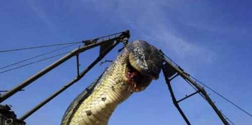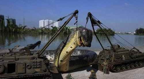 这条蛇是世界上最长的一条,体长达到了500米,巨大蛇害死了320游客和125埃及潜水员,于是就派遣军队将其围剿,也有报道说是八名埃及潜水员将这条蛇杀死的。看了图文实在是觉得搞笑至极。