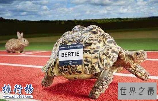 这只南非豹纹陆龟名叫“Bertie”来自英国,凭借着15.59秒跑出18英尺(约5.48米)的惊“龟”战绩,进入了最新出版的《吉尼斯世界纪录大全2016》中,Bertie爬行速度大约是一般乌龟平均爬行速度的两倍,它还可以在6分钟内爬行100米....详情请看【世界上跑的最快的乌龟】