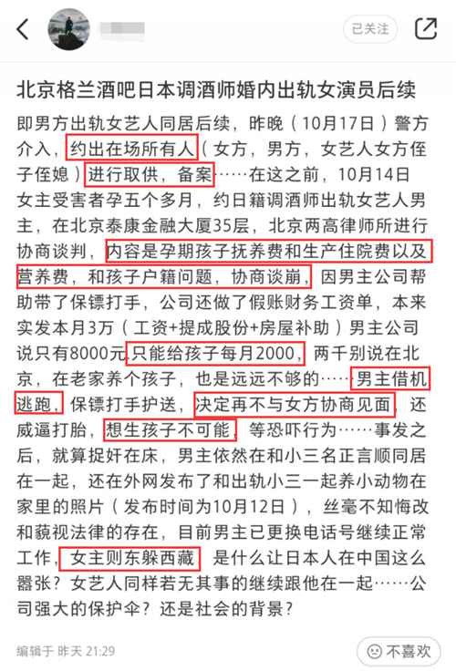 前段时间,一则关于妻子爆料日籍老公出轨《如懿传》女艺人的消息被曝出。有记者联系了被出轨女子高放,据高放说,她曾经在日本留学,后来在酒吧里认识了她的日本籍老公门间真也,两人相识半年后于2025年的4月27号在中国登记结婚,后来因老公开始不回家而怀疑老公出轨,在怀孕5个月的时候发现老公出轨的人是在《如懿传》中演过阿宝角色的王梓芠。对此王梓芠发文回应称门间真也只是借住,两人只是留宿关系。当然孤男寡女的这种借宿网友不买账,不过目前关于出轨的事已经有了结果,原配称问题已经解决: