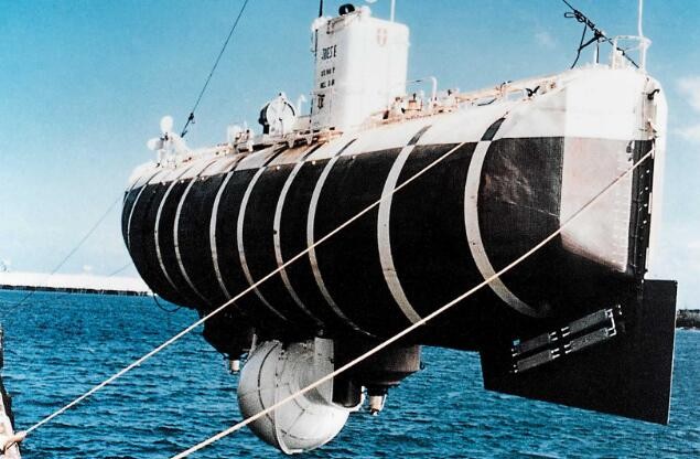 ①的里雅斯特号(美国/1958年):长15.1米,宽3.5米,可载三人,1960年1月,“的里雅斯特”号首次潜入世界上最深的深渊——马里亚纳海沟,下潜深度10916米,它也因此成为世界深浅最深的潜水器。