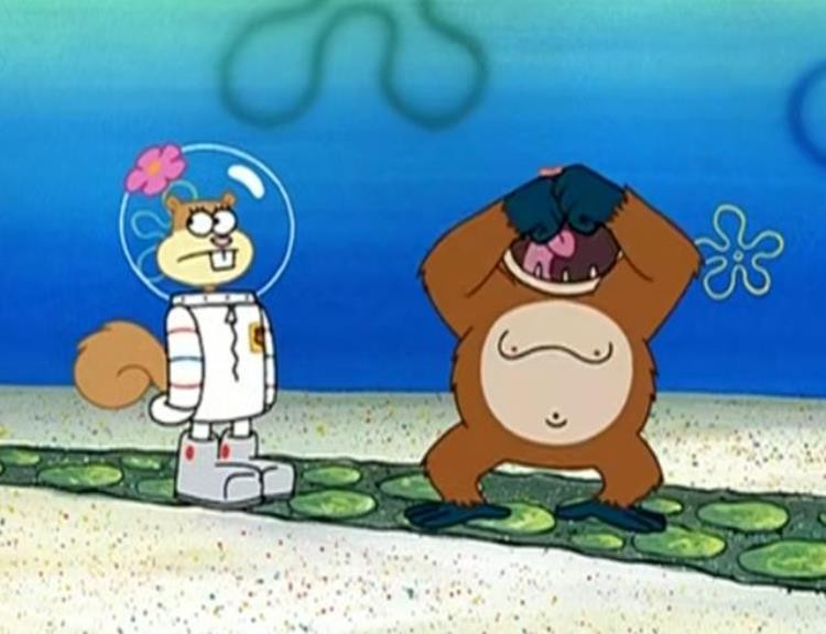 最终二人决定演一出戏,假装珊迪遭遇了危险,在这种情况下,海绵宝宝一定会出手相助,于是就由派大星扮演大猩猩,攻击珊迪。果不其然,最终海绵宝宝为了帮助朋友,勇敢地走出了凤梨屋,他的恐惧症也就此消失。
